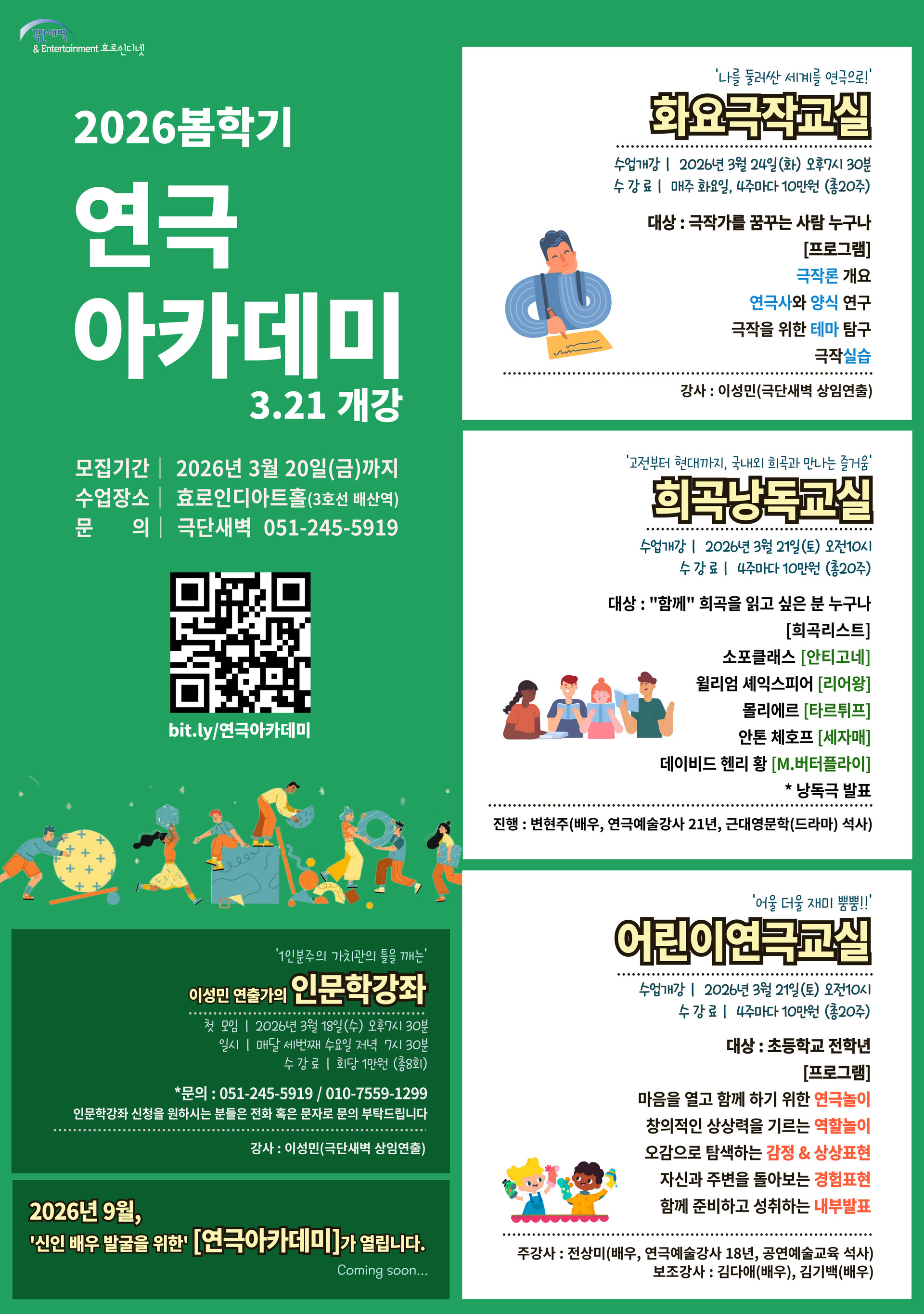 [모집개요] 모집기간: ~2026. 3. 20(금) 오후6시까지 교육장소: 효로인디아트홀 (부산 연제구 연수로235번길 7, 3호선 배산역 2번 출구)신청문의: (051)245-